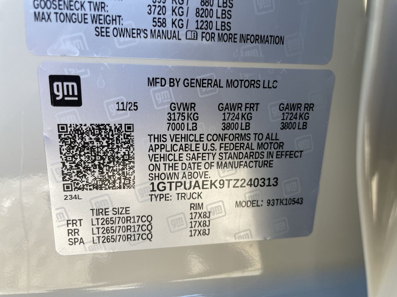 - 17" LT265/70R17 all-terrain, blackwall spare tire