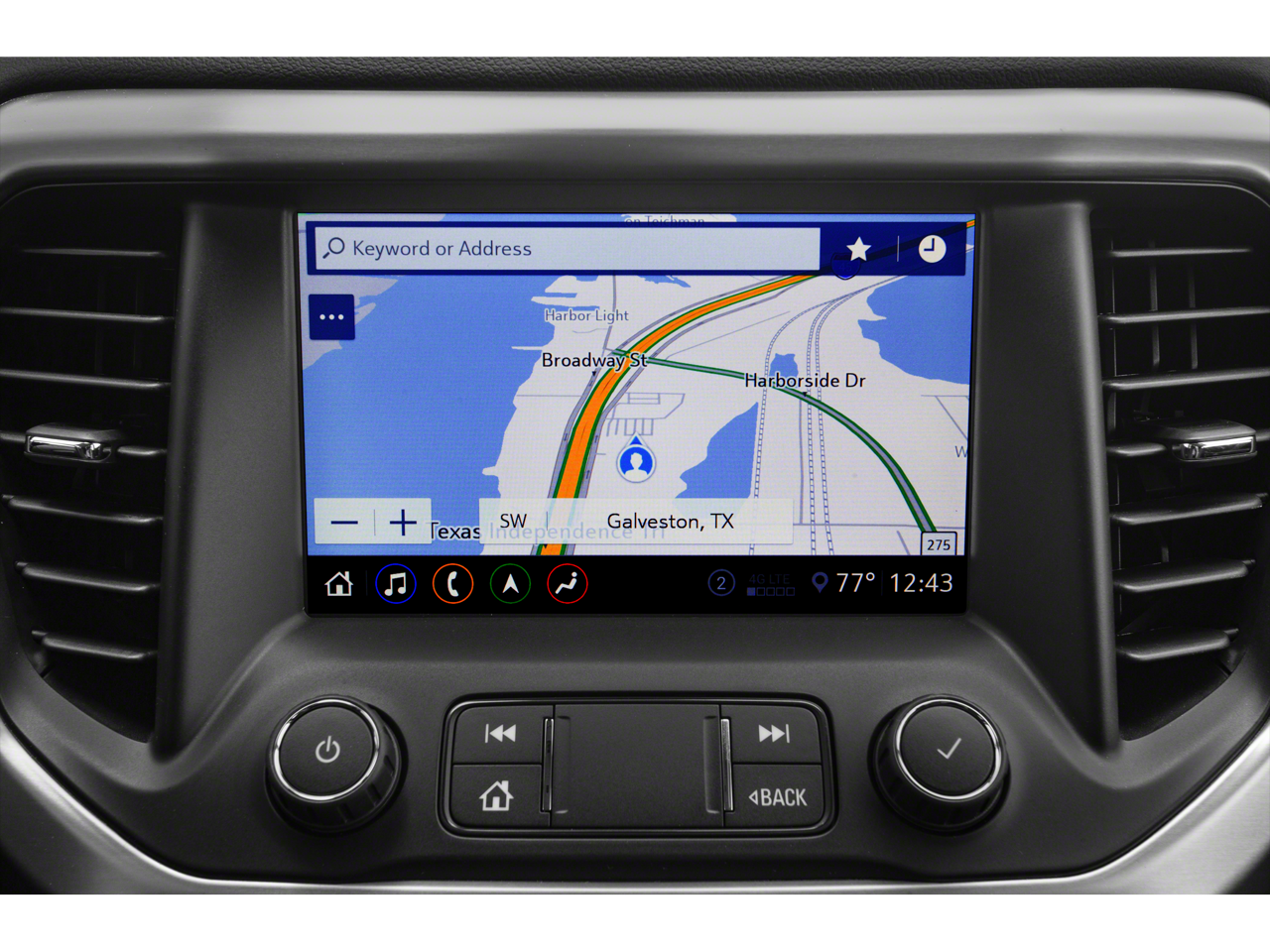 - 8" diagonal GMC Infotainment System with Navigation, includes multi-touch display, AM/FM/SiriusXM1 radio